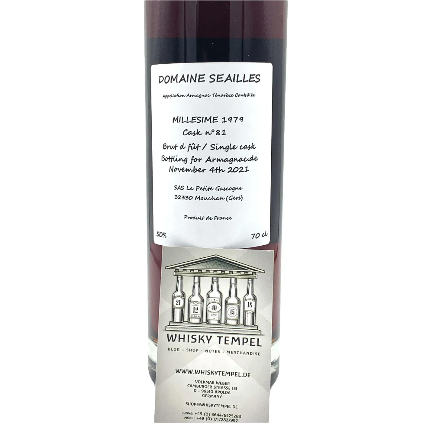 Dieser Armagnac, der aus einer kleinen Parzelle des Weinguts stammt, reift in 400-Liter-Fässern, wurde 1979 destilliert und reifte 42 Jahre lang, bevor er mit 50% abv abgefüllt wurde. Vom Importeur: "Das Weingut Séailles ist einer der Pioniere des ökologischen Weinbaus in der Region Côtes de Gascogne im Südwesten Frankreichs. Das seit 1961 in Familienbesitz befindliche Weingut Séailles wird heute von Jean Labérenne geleitet, der das Weingut 1997 zur Bio-Zertifizierung durch Ecocert führte und dabei allen chemischen Düngemitteln, Herbiziden, Insektiziden und synthetischen chemischen Produkten abschwor. In der Stadt Ténarèze, die für ihre kalkhaltigen Böden einzigartig in der Region ist, bewirtschaftet Jean Labérenne mit Hilfe von Julien Lanclet und Laurent Lefèvre insgesamt 25 Hektar Weinberge in Hanglage und bewahrt sogar 2 Hektar Reben für die Herstellung der traditionellen Spirituose der Region, dem Armagnac."