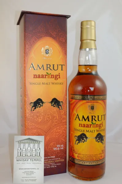 Es wurden befüllte Olorso Sherry Fässer aus Spanien beschafft um diesem Sherry frische Orangenschalen hinzuzufügen. Nach zwei-jähriger Reifung wurden diese Fässer anschließend mit Amrut Single Malt befüllt um diesen nachreifen zu lassen. Das Ergebnis ist ein eleganter Single Malt mit leichten Orangen- und Sherrynoten.