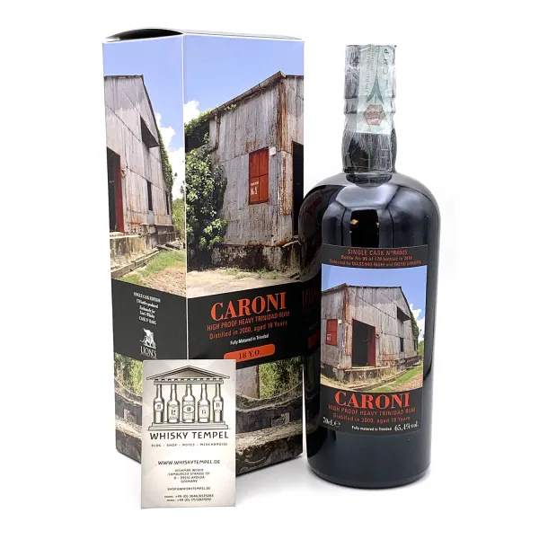 This 18-year-old Caroni Single Cask bottling from 2018 is an outstanding bottling of the Closed Distillery Caroni from Trinidad/Tobago. Distilled in 2000, 100% tropical aged in Trinidad, bottled in 2018 in full proof of 65.4%. An original bottling from Velier/Italy exclusively for Whisky Antique/Italy. 170 individually numbered bottles of Single Cask #R4005 were filled. The Angels share of this exceptional bottling was about 75%.