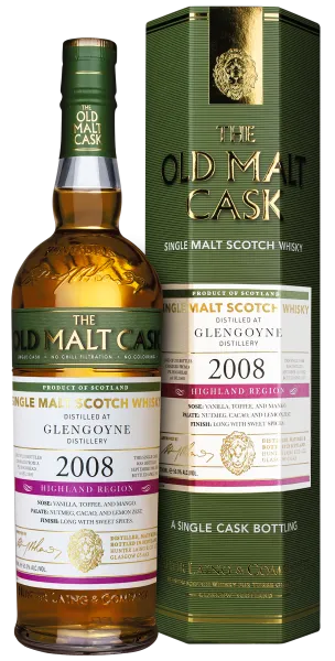 Glengoyne Vintage 2008: Das Single Cask Glengoyne Vintage 2008 durfte für über 16 Jahre in einem PX-Sherry-Hogshead reifen und offenbart eine reichhaltige Toffee-Süße, Vanille Aromen und Zitrus-Noten. Streng limitiert auf 232 Flaschen präsentiert der Glengoyne Single Malt ein langanhaltendes und würziges Finish.