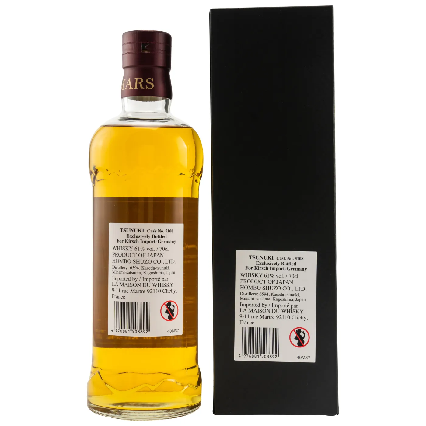 Das Single Cask für Kirsch Import stammt aus der Tsunuki Brennerei und ist nach Tsunuki The First erst die zweite Abfüllung aus diesem Mars-Zweig. Im subtropischen Süden Japans, reifen Destillate bei Temperaturen von -2° C im Winter bis zu 36°C, was die Reifezeit verkürzt. So erreichte der Single Malt aus dem Second Fill Bourbon Barrel bereits nach drei Jahren seine aromatische Reife. Genießer kommen bei fassstarken 61% vol. in den vollen Genuss der von weicher Vanille, Crème brûlée, Karamell und Sandelholz geprägten Aromen aus dem Second Fill Bourbon Barrel.
