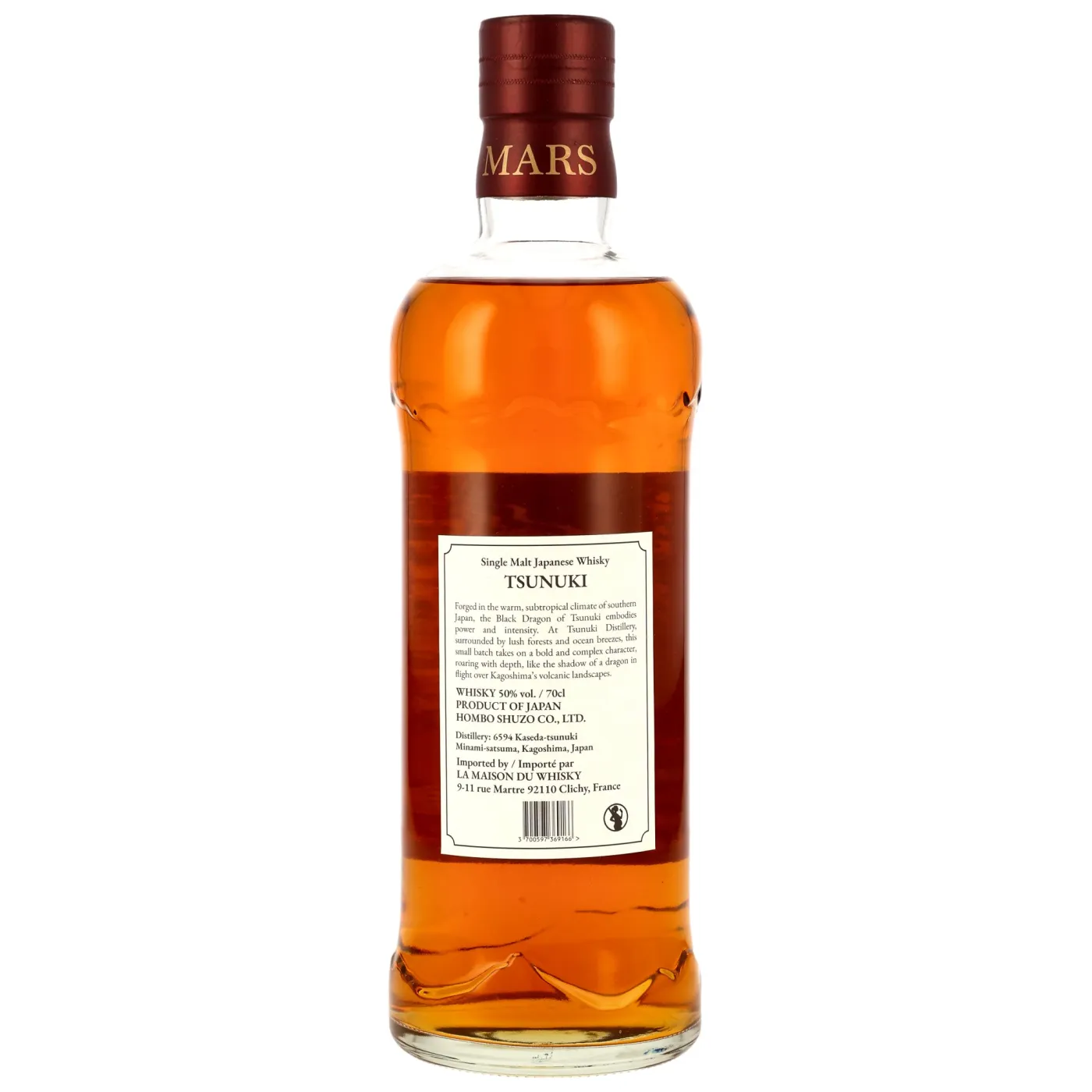 Der Mars Tsunuki Black Dragon transportiert Kraft und Intensität aus der Vulkanlandschaft von Kagoshima. Sein vollmundiger und komplexer Charakter wurde durch die Reifung in Sherry Casks, Bourbon Hogsheads, Port- sowie Rotweinfässern aus dem Weingut Mars Yamanashi unterstrichen. Der Single Malt speit vielschichtige Noten von lebhaften Früchten, zartem Torfrauch, würzigem Malz und vollmundiger Süße.
