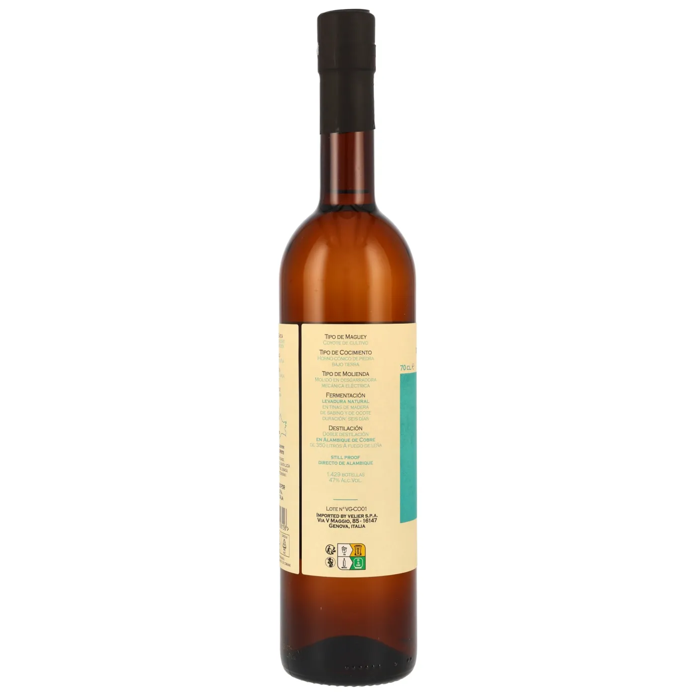 Mit diesem Tropfen zeigt Maestro Mezcalero Valente García, was Handwerk bedeutet. Sein Coyote – eine seltene, großblättrige Agavenart – wird traditionell in der Steinmulde gegart, per Tahona zermahlen, in offenen Holzfässern fermentiert und zweifach im Kupferkessel destilliert. Das Ergebnis: ein Mezcal voller Tiefe und Persönlichkeit.