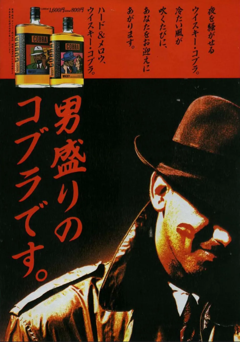 Der "Cobra" erschien anläßlich einer Filmpremiere im Jahr 1986. Angelehnt an den amerikanischen Comic-Style waren Etikett und Flaschenform sehr modern gehalten. Aufgrund der strengen japanischen Alkoholgesetzgebung in der 1980er Jahren wurde der Whisky mit nur 39% abgefüllt, um einen Steueraufschlag, der ab 40% fällig wurde, zu umgehen. Die Flasche wurde nur für kurze Zeit am Markt produziert und verschwand bereits wieder Anfang der 1990er Jahre. Heutzutage eine absolute Rarität.