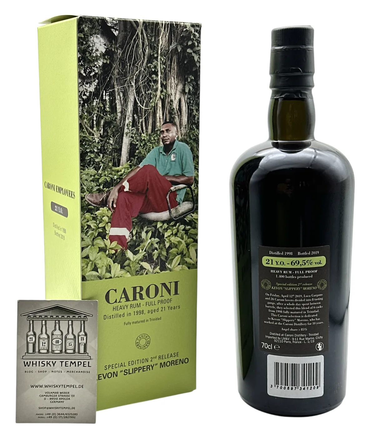 Was Kritiker am 2nd Employees Kevon „Slippery“ Moreno HTR am meisten schätzen, ist sein intensiver, authentischer Caroni-Charakter. Noten von Teer, Gummi und Leder stehen im Vordergrund und werden durch tropische Früchte und Vanille ausgeglichen, insbesondere wenn sich der Rum mit der Zeit entfaltet. Viele empfehlen, ihn langsam zu genießen und ihn atmen zu lassen, damit sich seine volle Komplexität und sein langer, bittersüßer Abgang entfalten können. Er wird wegen seiner Kraft und seines charakteristischen Caroni-Profils hoch geschätzt und ist für engagierte Liebhaber, die etwas wirklich Besonderes suchen, eine bemerkenswerte Bereicherung.Einzelflasche - super rare Caroni Sonderedition.