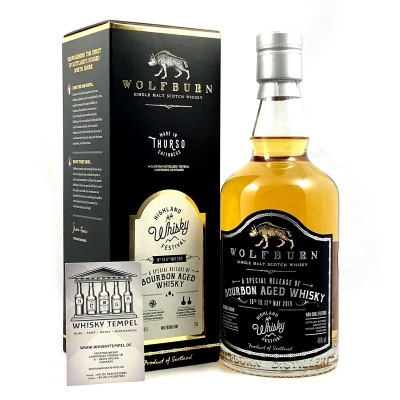 Speziell für das Highland Whisky Festival, welches im Mai 2019 erstmalig in Schottland stattfand, wurde diese limitierte Wolfburn Edition aufgelegt. Mit 5 Jahren Alter zählt diese Abfüllung zu einer der aktuell ältestens verfügbaren Flaschen der Brennerei. Die Auflage betrug nur 660 Flaschen, sie wurde nur während des Festival verkauft.