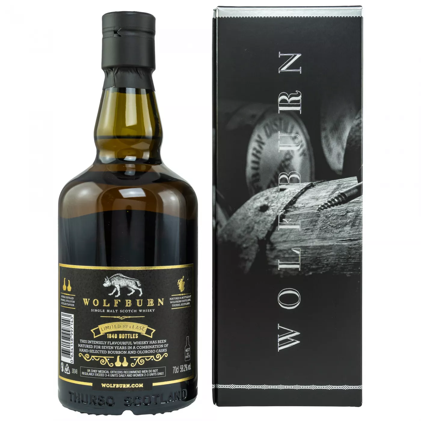 Small Batch - Limited Edition - Nur 1840 FlaschenDas Small Batch reifte für sieben Jahre in ehemaligen Oloroso Sherry Butts und ehemaligen Bourbon Quarter Casks. Es ist die erste leicht getorfte Abfüllung von Wolfburn in Faßstärke. Dabei ist sie wunderbar cremig und zeigt eine reichhaltige Aromentiefe und -vielfalt.